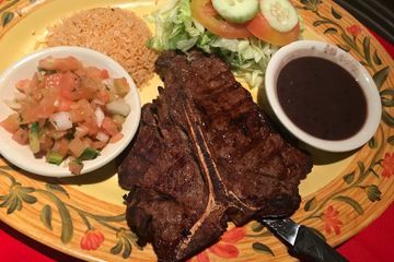 A 16 oz, porterhouse steak, seasoned and grilled to perfection served with black beans, rice, salad and pico di Gallo. $35.00
