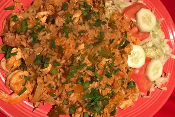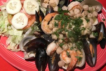 Lobster tail, shrimp, bay scallops, mussels, clams, chicken and chorizo (Spanish Sausage) sautéed with Spanish rice and salad. $35.00