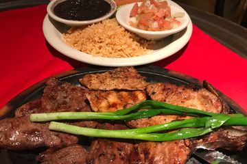 Grilled and seasoned shell steak, pork chop, chicken and skirts steak served on a sizzling skillet with salad, rice and flour tortilla. $30.00